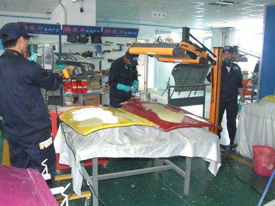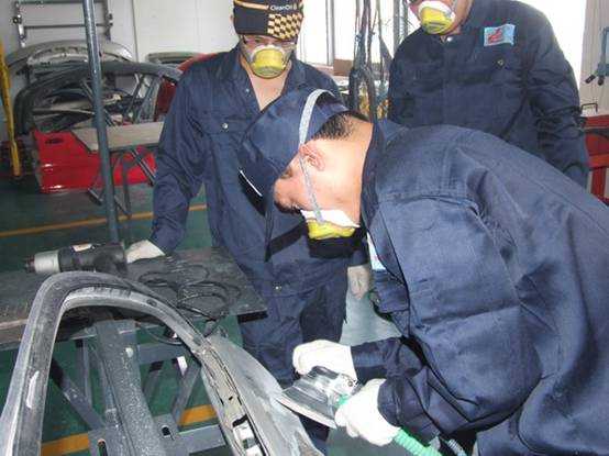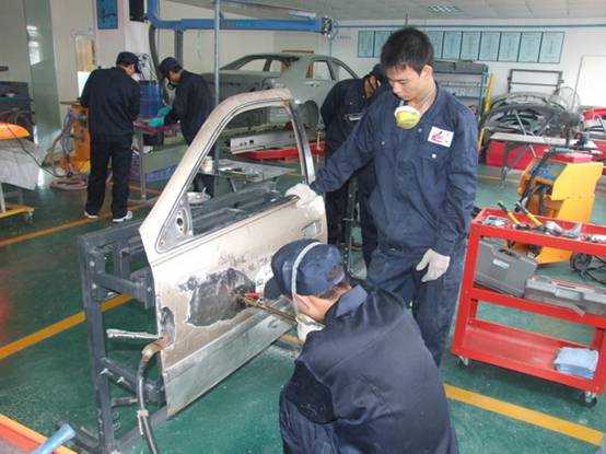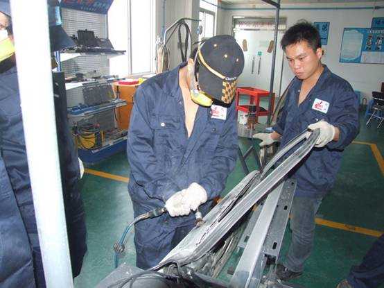 老師們實操磨灰機進行車身修復(fù)