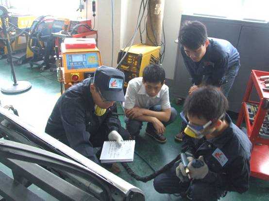 林老師使用龍神牌鈑金修復(fù)機進行焊接作業(yè)